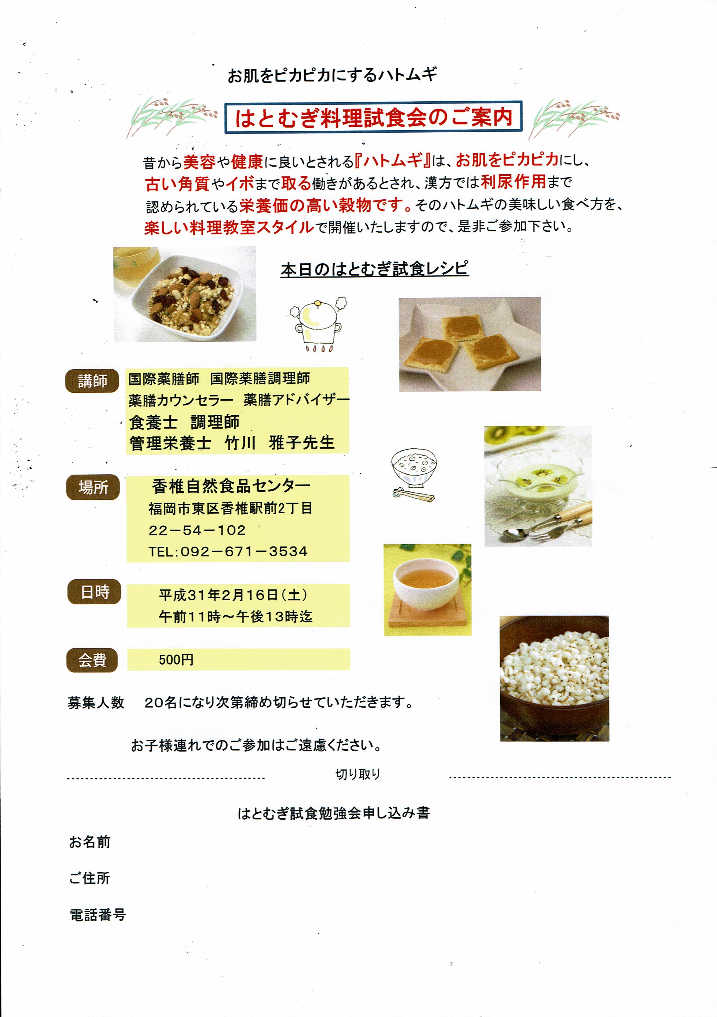 H31.2月16日(土)人気講座のはとむぎ講座開催!